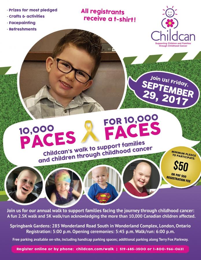 Join us for Childcan's annual walk to support families facing the journey through childhood cancer: a 2.5K walk and 5K walk/run acknowledging the more than 10,000 Canadian children affected.