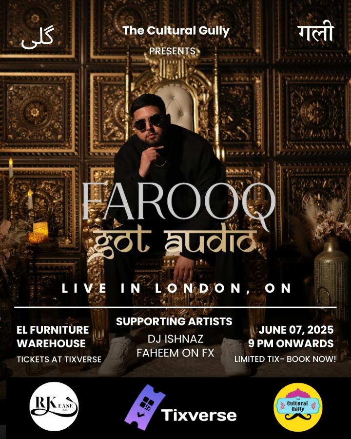 For the first time, Farooq got audio will be performing here in London, Ontario! Hailing from the UK, this music producer, composer, and artist has a unique blend of retro sounds and modern trap beats in his music. You don't want to miss this!