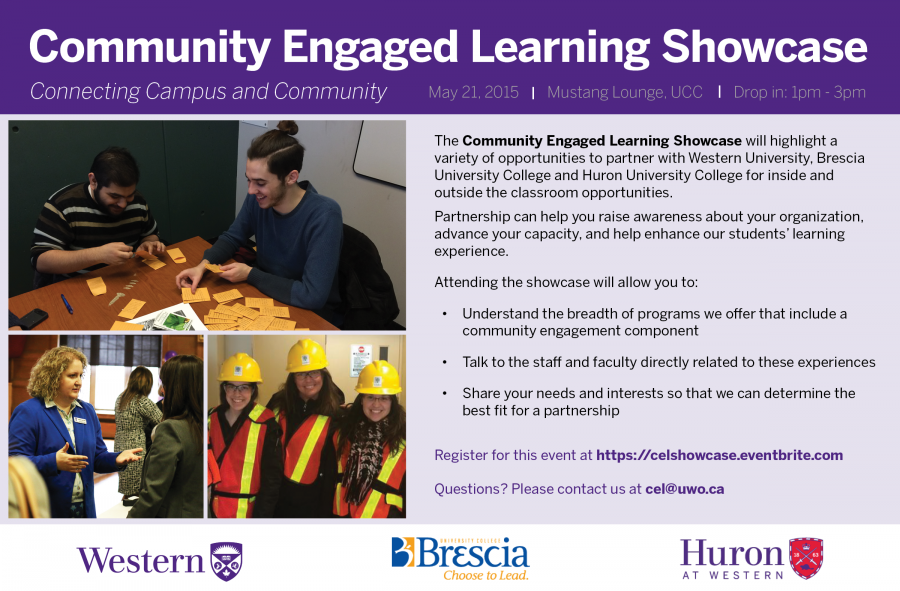 Event URL Community Engaged Learning Showcase: Connecting Campus and Community https://celshowcase.eventbrite.com