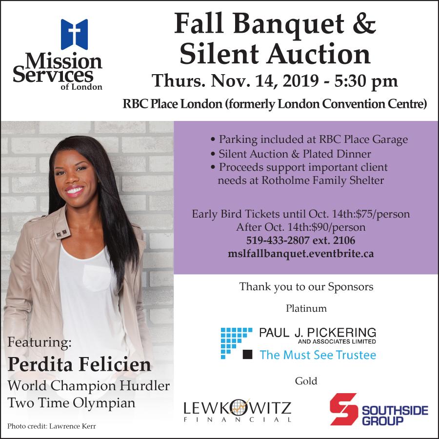 On Thursday, November 14, 2019 at RBC Place London (formerly London Convention Centre), join Mission Services of London's signature evening, featuring a large silent auction, a delicious plated dinner, and an inspiring speaker.