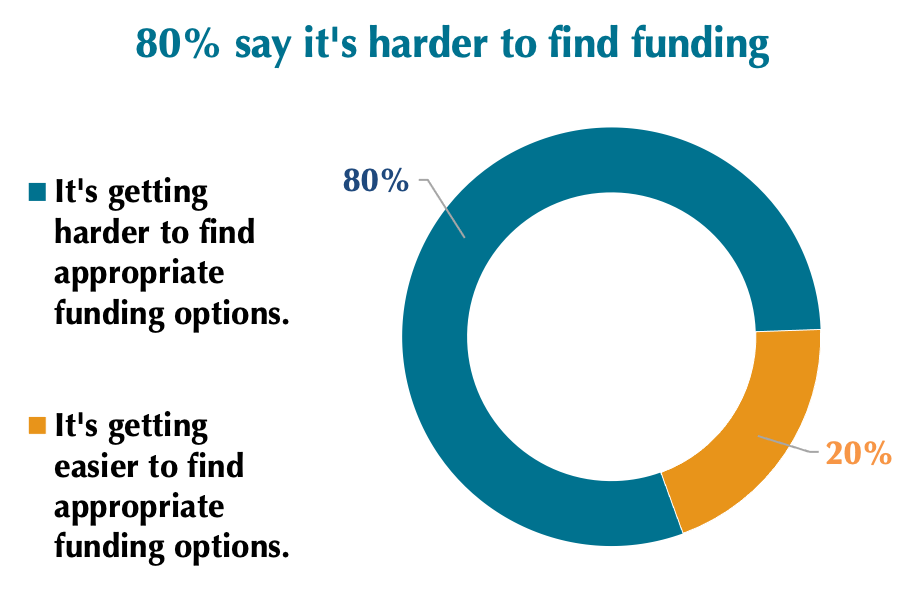 • 80% or respondents report that it’s becoming harder to find appropriate funding options, rising to 90% for small nonprofits