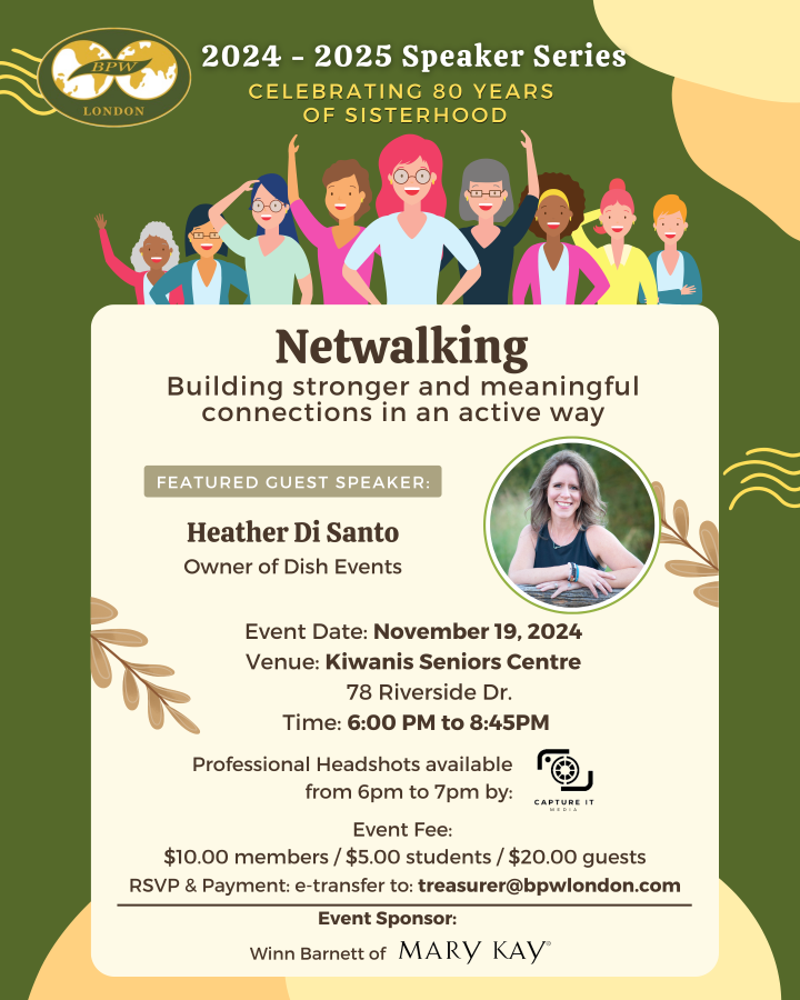 And the opportunity to update your headshots will also increase your networking visibility. Register for your appointment: BPW London Headshots Session