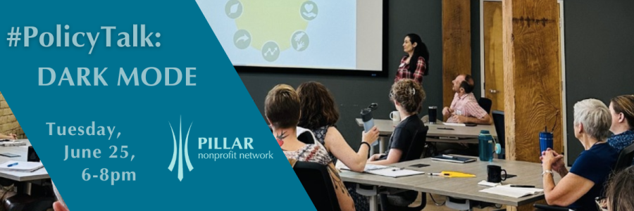 In #PolicyTalk: DARK MODE, we’re gathering in the evening to make it easier for folks who’ve identified daytime meetings as a barrier, and we’re focusing on identifying the issues that challenge the sector, our organizations, our people, and the communities we serve.