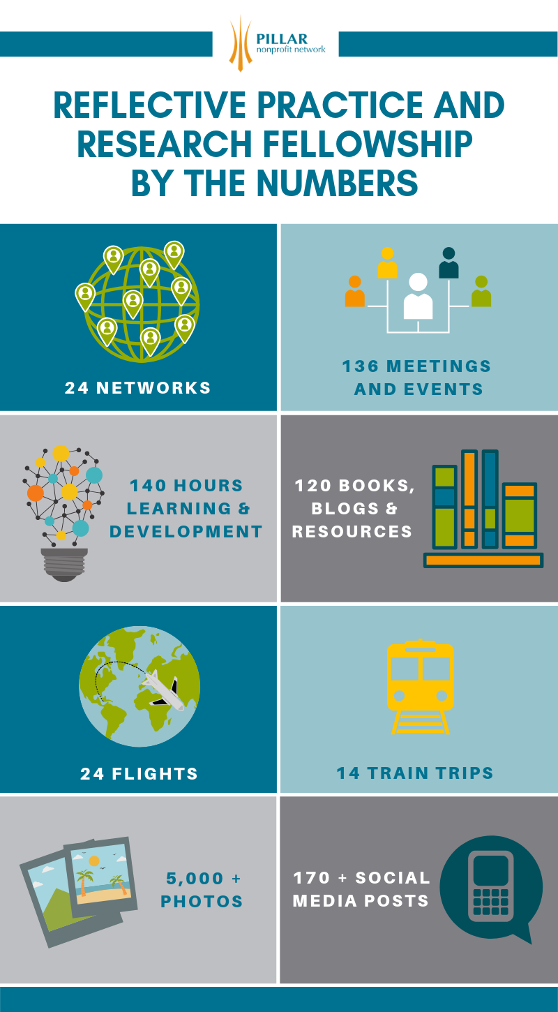 A key goal for the fellowship was to share our network approach at Pillar and share a cohesive story of Pillar, Innovation Works and VERGE Capital. We decided on a micro-site “The Network Approach by Pillar Nonprofit Network” that would provide educational content about our promising practices using the network building principles of collaboration, leadership and governance, equity and inclusion and storytelling and impact. Developing this site has been a succession planning exercise to have myself and our team document our learning and promising practices since the inception of Pillar. It is our hope that is will also serve as a thought leadership hub for those starting a similar network to Pillar or for those who want to borrow some of our promising practices for their own organizational development.