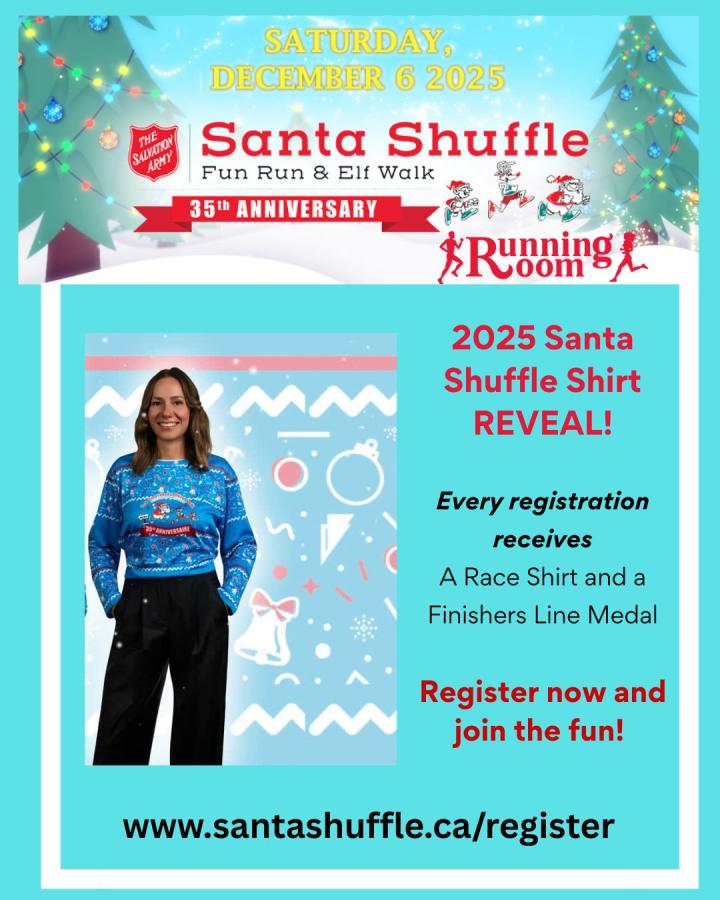 Registration is open for the 35th Annual Santa Shuffle! We are in-person on Saturday, December 6, 2025 at the Civic Garden Complex, Springbank Park!