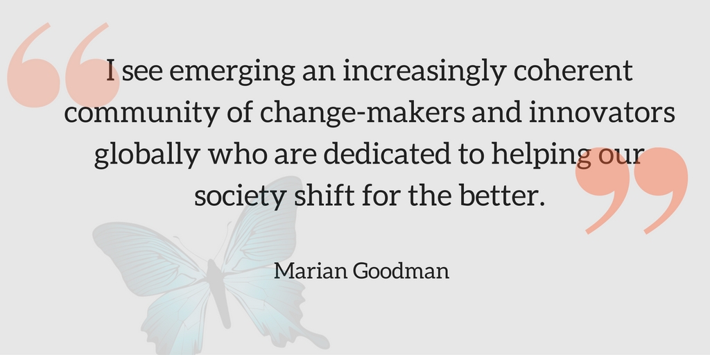 Marian Goodman believes deeply in the power of human beings to co-create the kind of future we want to live in. As a leadership consultant and coach, working closely with Dr. Otto Scharmer (MIT, Presencing Institute) to build capacity for profound social transformation, she travels the world delivering programs and innovation labs across all sectors and levels of society. Her work ranges from Leadership Learning Journeys into India, Africa, South America and elsewhere, to executive education in Graduate Schools of Business, to engagement at community grassroots - all to activate responsible, authentic, wholehearted leadership and deeper awareness of collective impact. Marian speaks numerous languages, and has her home base in Cape Town, South Africa.