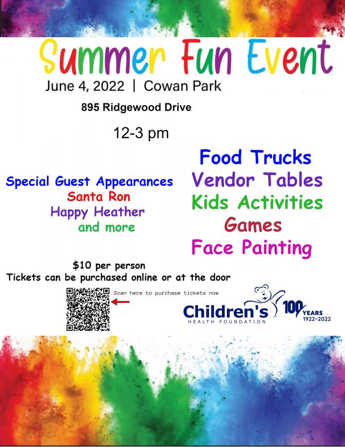 The event will take place on Saturday, June 4th from 12 pm-3 pm at Cowan Park Sportsplex and will feature a vendor sale, food trucks, entertainment, kids activities, games and more.