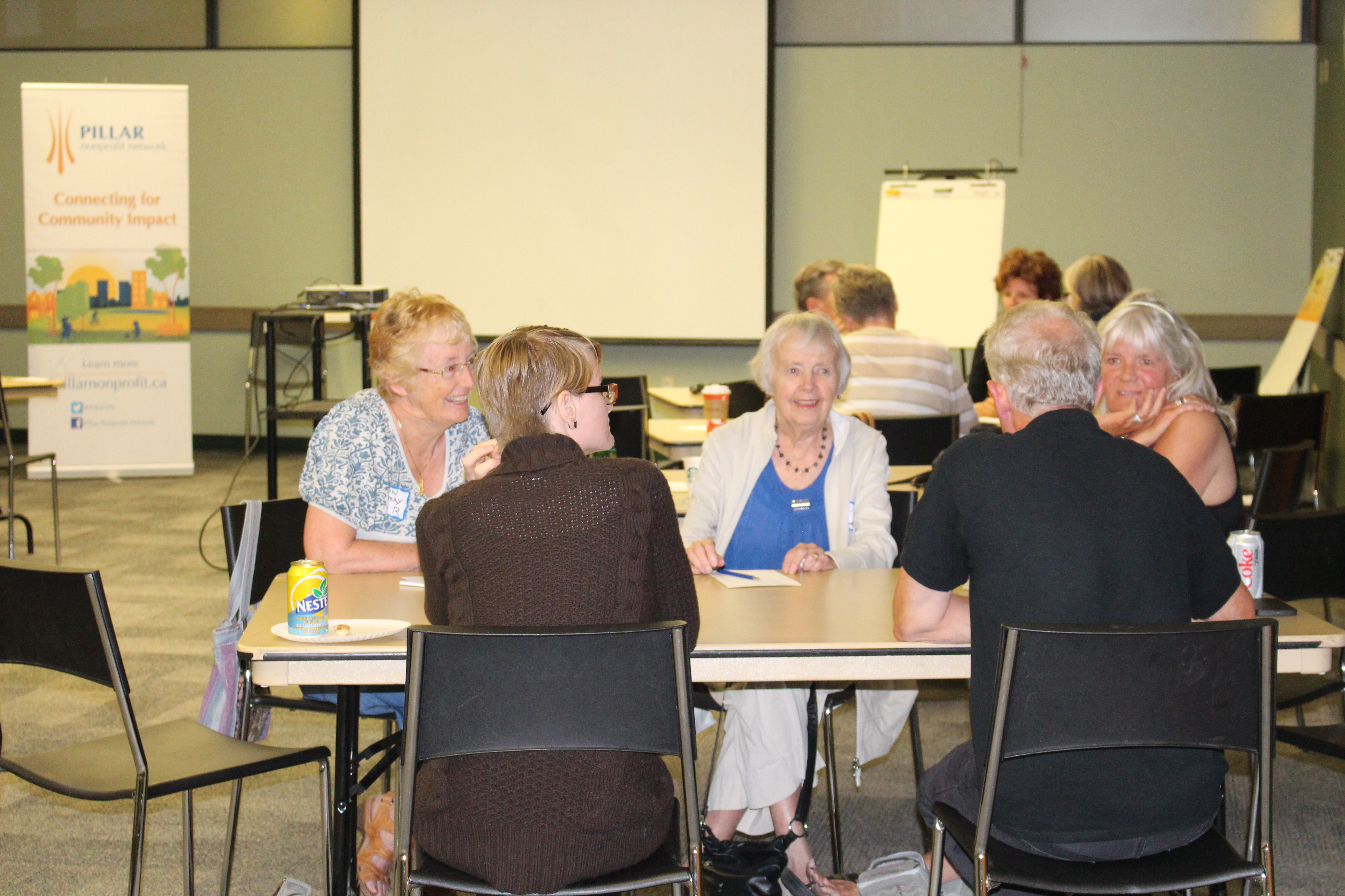 On August 4,2015 we invited member organizations with an operating budget of less than $100,000 to a round table discussion. We wanted to learn more about their unique needs and how we could support their organizations through professional development and other areas. We ate pizza, broke out into groups and brainstormed issues/challenges and how Pillar might be able to help.