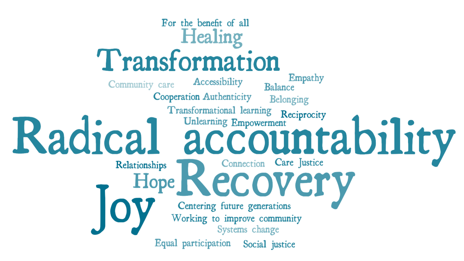 Read on for a summary of Mojdeh Cox’s remarks addressing why we must hold both joy and recovery in these times, along with a visual representation from our attendees’ responses on what’s possible at the intersections of recovery, joy and radical accountability and what joy means to them.