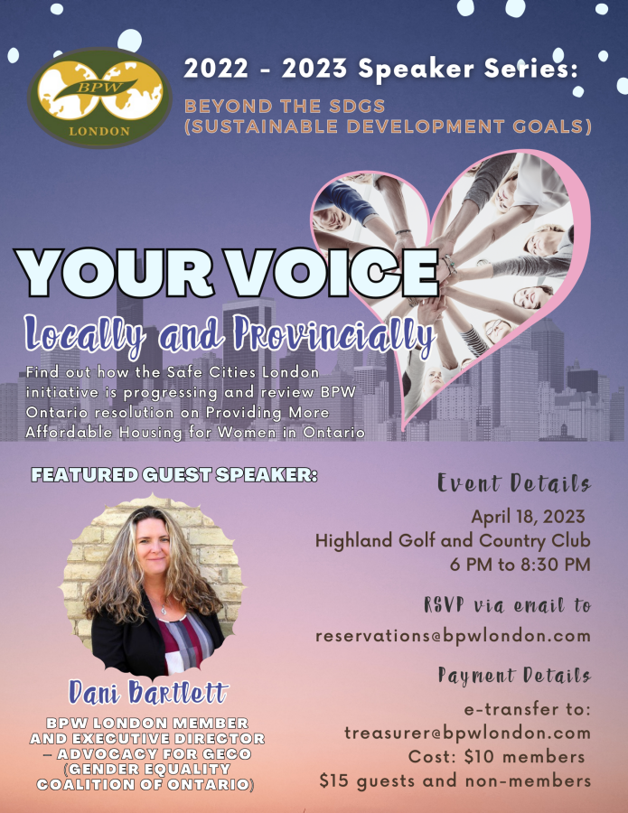 Join us in April for our Advocacy month focus. We welcome members and guests to our events.